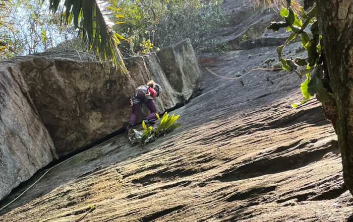Conquistamos e reformamos vias de escalada para todos escalarem com segurança.